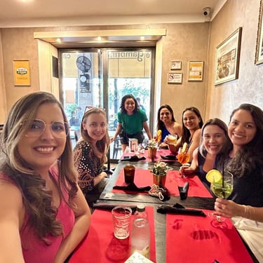 À tardezinha, encontro especial do grupo para um happy hour, momento pensado para celebrar juntas a estreia do Brasil na Copa do Mundo. Um encontro descontraído, com clima leve e animado, perfeito para compartilhar risadas, torcer e fortalecer ainda mais as conexões do grupo.